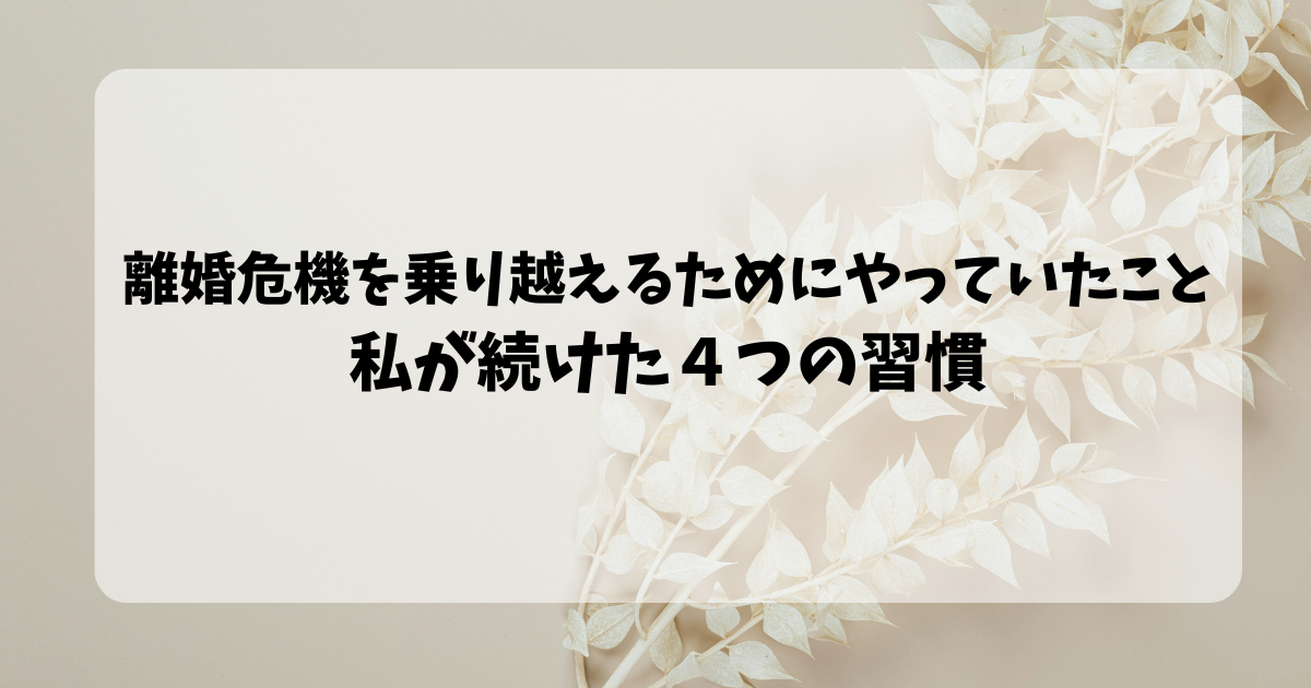 地味に見えます。でも、夫を変えようとするより先に、自分を大切にすることから始めると、心が少しずつ安定してきます。